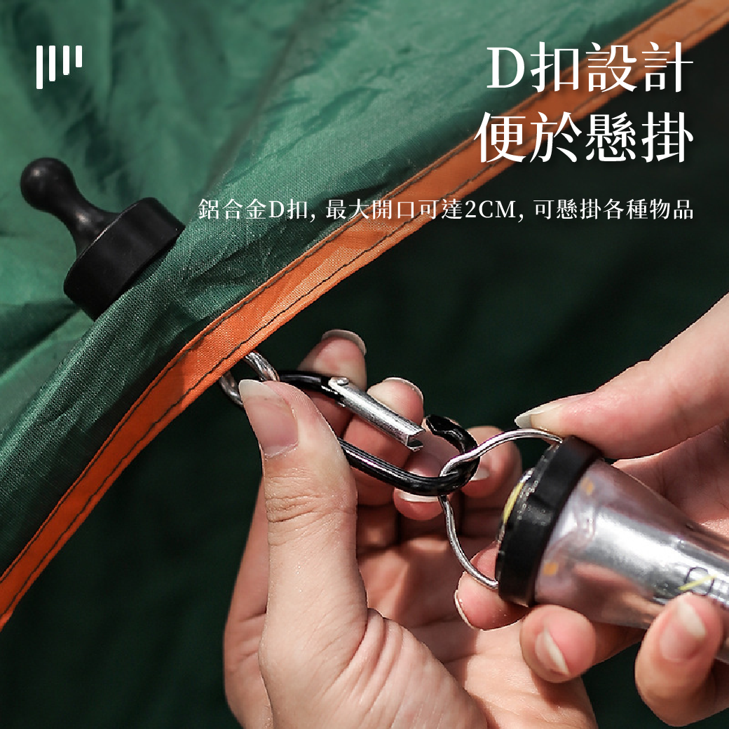 3.鋁合金D扣,最大開口可達2CM,便於懸掛